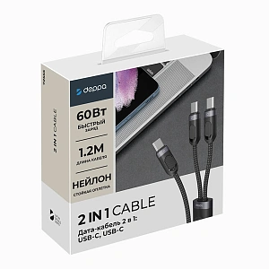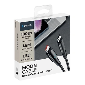 Дата-кабель Deppa Moon Cable Type-C to Type-C 1.5 м, чёрный